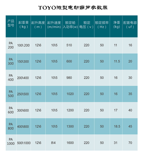 TOYO微型電動葫蘆PA-1000 12米民用電動提升機